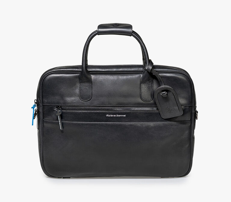 This is the slimmer version of our office bag. In today’s paperless age, this elegant black leather bag is more than sufficient for everyday office utensils. The bag has a padded compartment for laptops up to 16 inches. The padded bottom of the bag ensures that the laptop will be well protected when putting the bag down. The interior of the bag has three generous compartments, two of which can be closed with a Velcro strap and one with a zip.