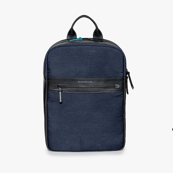 A stylish backpack that is perfect for both leisure and business. The padded handles and breathable mesh on the back panel ensure high wearing comfort. The narrow leather strap on the back panel can be used to slide the bag over the handle of a trolley or suitcase.