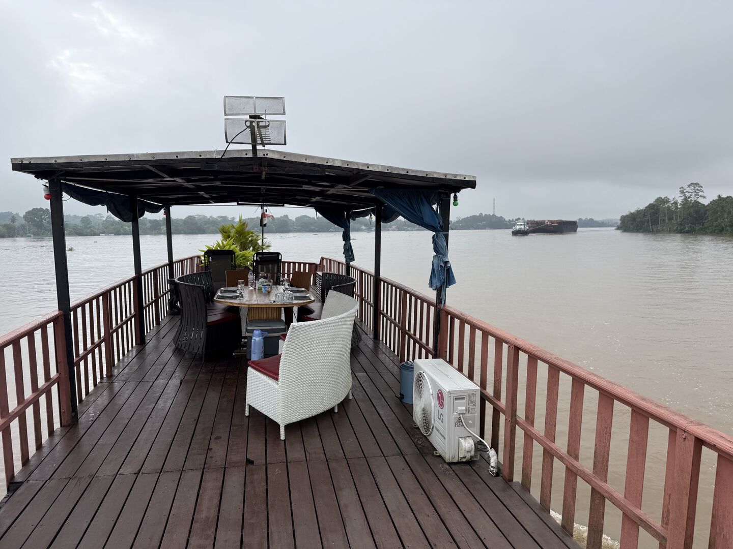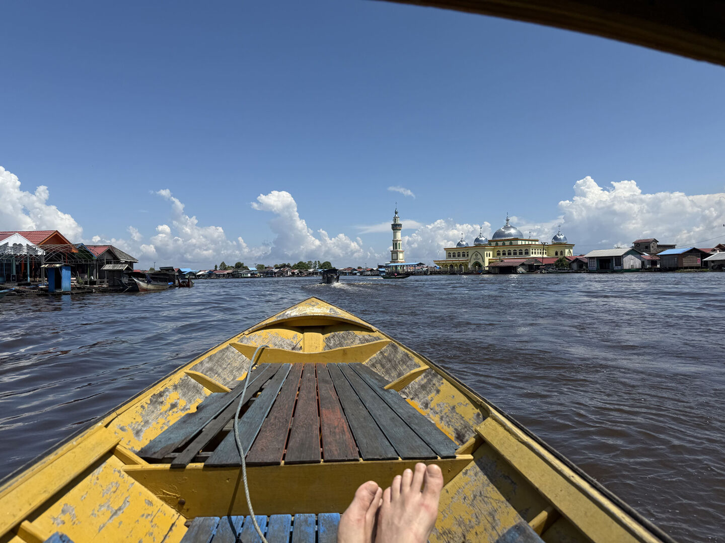 We start our trip with a three-day boat journey along the Mahakam River. Borneo is one of the greenest islands in the world and home to Asia’s largest tropical rainforest. But we quickly discover why the area isn’t touristy: the riverbanks are lined with coal mines, massive tugboats loaded with coal pass by endlessly, and the rainforest is being flattened at an alarming pace. The journey is pleasant, but not photogenic in the slightest.