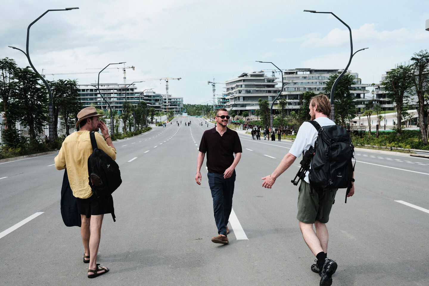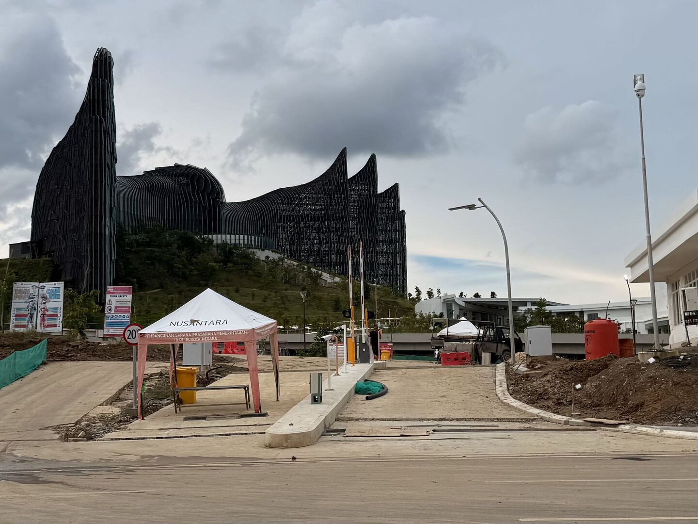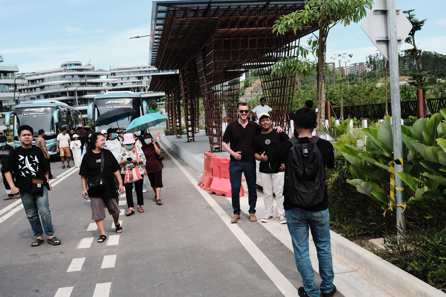 Our second attempt at finding an original backdrop is Nusantara, Indonesia’s future capital. Jakarta sinks twenty centimetres into the sea each year, so a new capital is being built from scratch in the middle of the Bornean jungle. We hope for surreal scenes of half-constructed buildings in the wilderness, but instead it feels mostly like a suburban development area. A nice place for a stroll, but not for photos.