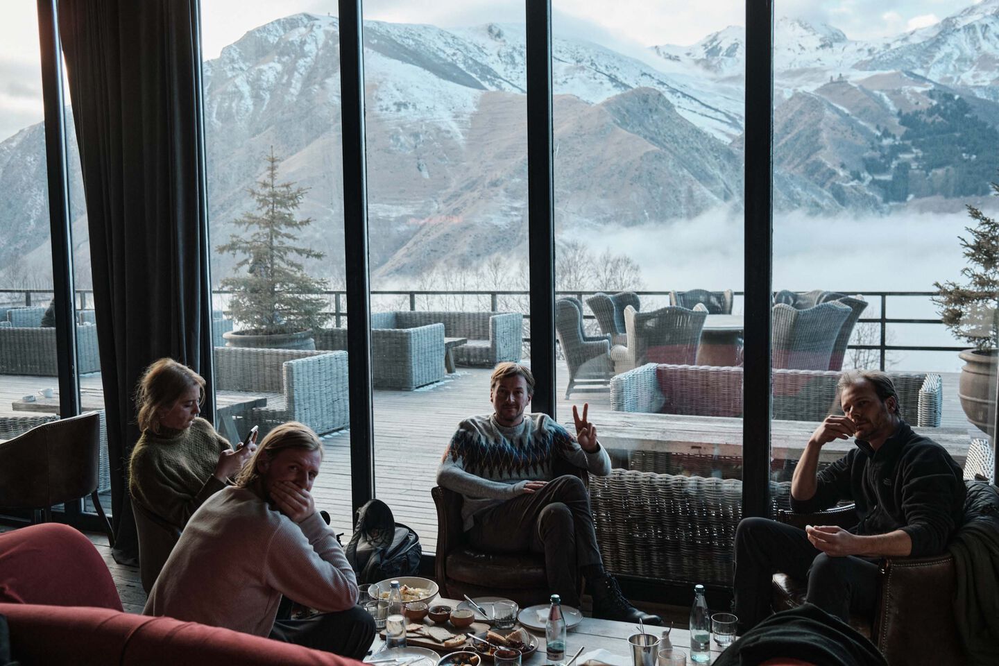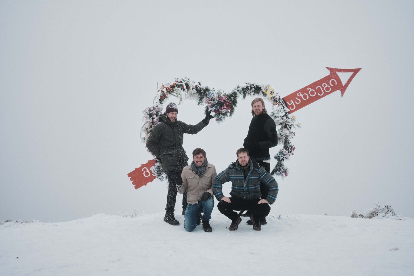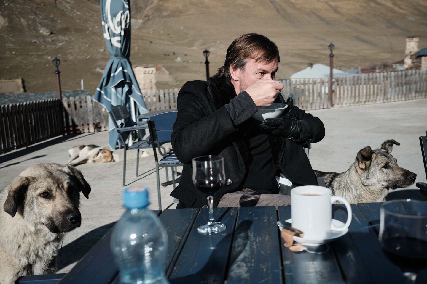 At the end of the scouting day in Tbilisi, we’ve found a few nice locations. Only our photographer Elmar is a bit nervous because of the gloomy weather forecast. We decide to risk it and drive very early the next day into the Caucasus with Katja, in search of blue skies. It's quite a long drive, so I have plenty of time to perfectly time my pun about wanting some “cold cassis” in the Caucasus. After three hours of driving, near the Russian border, the sky opened up. In the mountain village of Kazbegi (Stepantsminda) we took the last three photos of our trip.