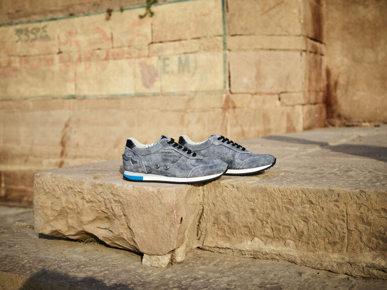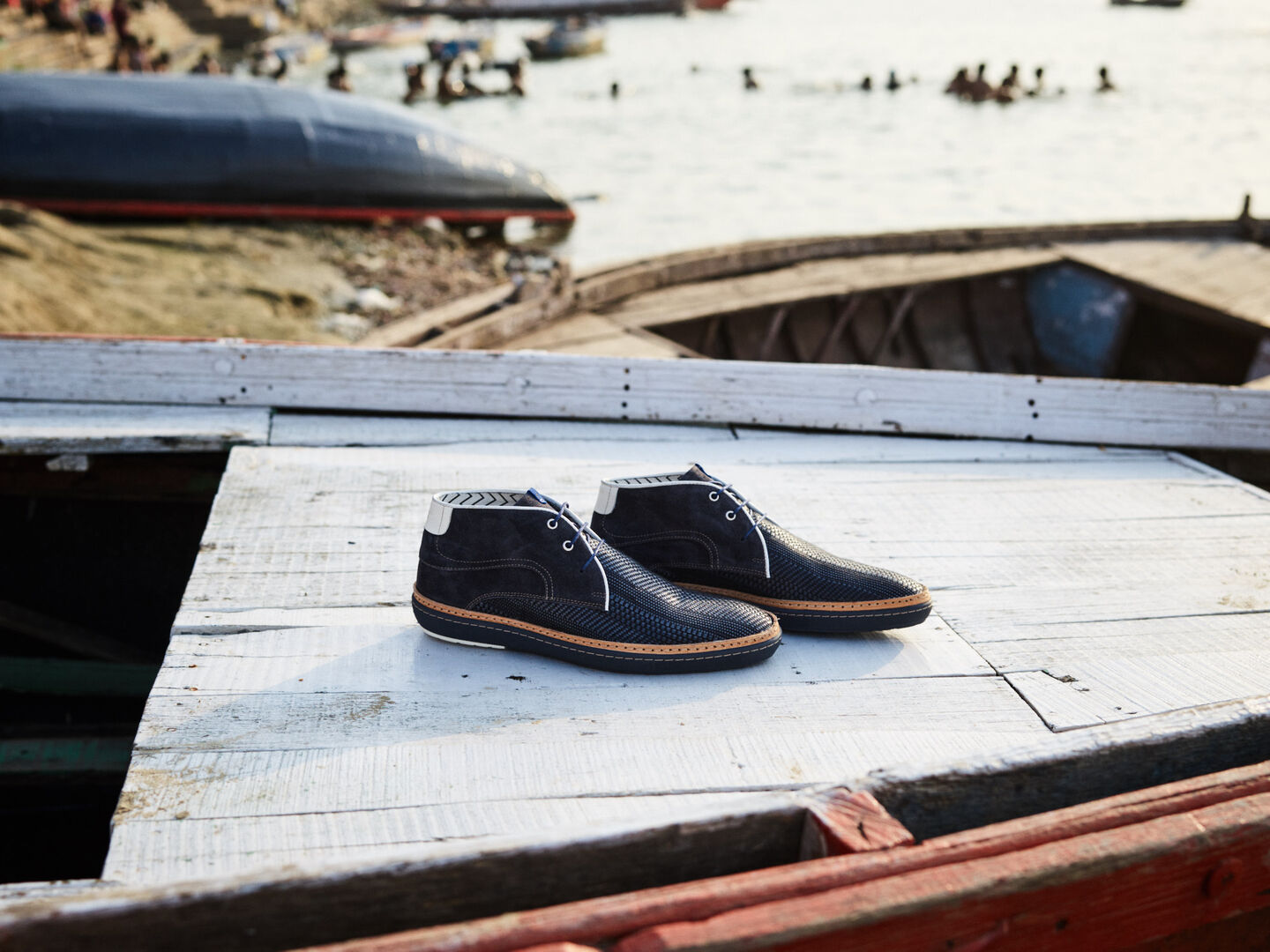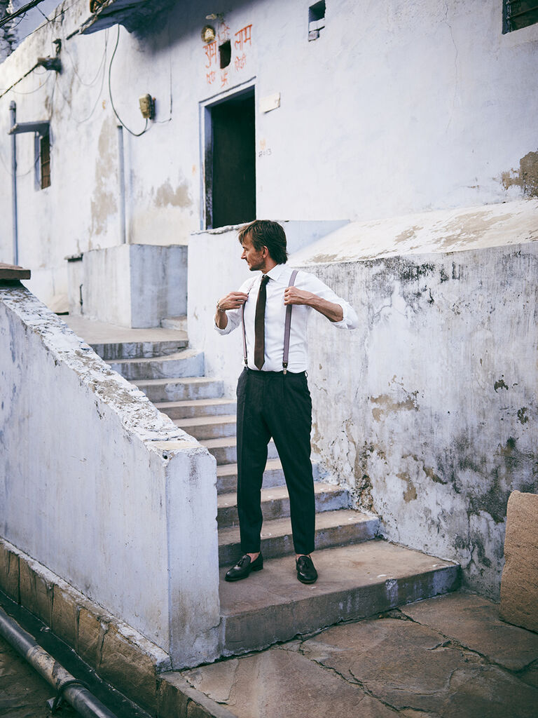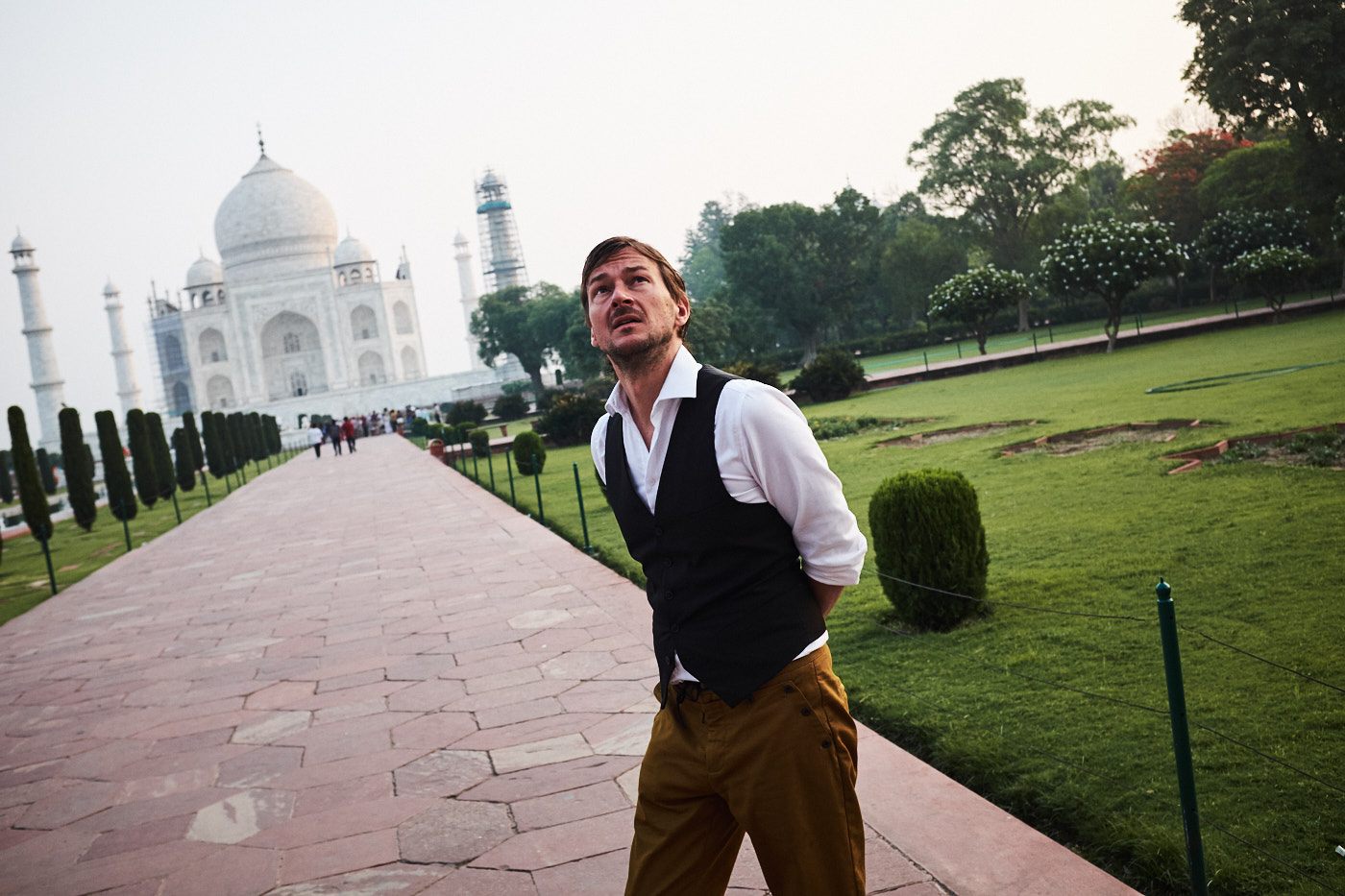 The photo we chose for the marketing campaign was taken in Varanassi, on the Ganges River. It was on the very last day, seven o'clock in the morning, and beads of sweat were running down my body. I walk around in clothes I've been wearing for days. On a trip like this, you never know when you're going to come across a beautiful location or beautiful light. So, I usually keep my photo clothes on to be able to jump straight into action. I didn't feel super fresh though. I also hadn't eaten anything for days due to sheer misery, BUT: The photo looks beautiful, relaxed and romantic. Elmar the photographer is a real miracle worker. What a crazy country...
