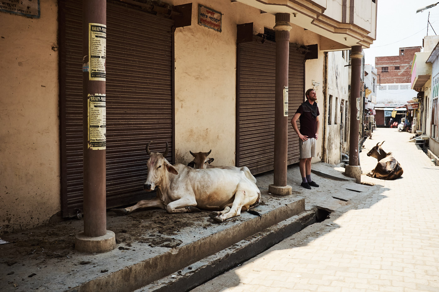 Our journey ends in Varanassi, India's holiest city. All the streets here are two metres wide. Literally all of them. All social life takes place in these streets. Including open sewers, scurvy greenish dogs, children defecating, people cooking, cows eating rubbish and scooters honking at full speed. Pretty intense...