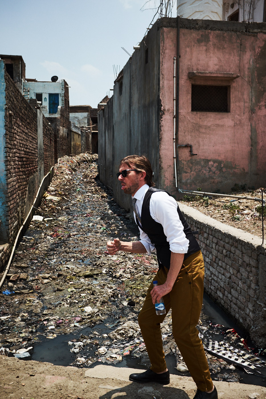 Halfway through our road trip, somewhere in the middle of Jaipur's metropolis, I tap our bus driver on his shoulder. Could you please stop for a second? One and a half steps out of the bus, I shoot out a spectacular jet of vomit. Huge! I’m really amazed. It sounds like I empty a bucket of water onto the pavement. There are about three waves. I think: What those funny Mickey Mouse ears are to Disneyland, food poisoning is to India. I'm standing with my hands on my knees, it’s half past six in the morning, about 35 degrees, I look to my left and there are three cows peacefully eating out of the open sewer about four metres away. I think to myself: 'Time for a mint'.