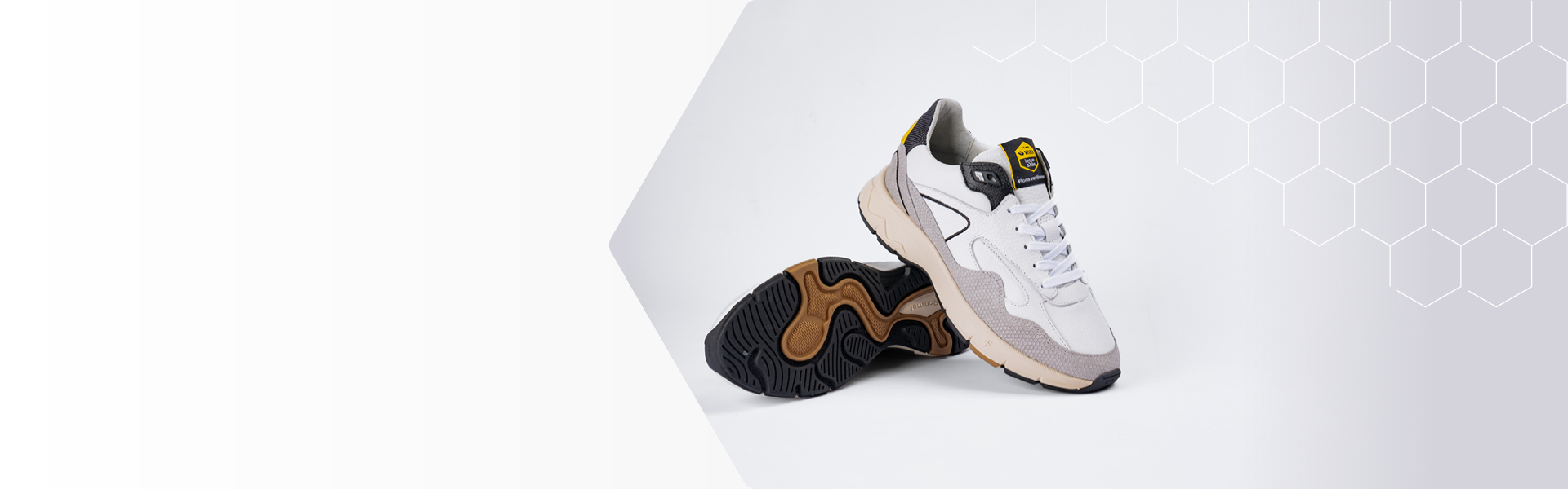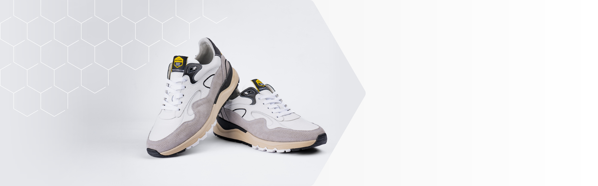 The sneaker comes in a sporty material mix made of white leather and off-white suede. The ‘Team Visma - Lease a Bike’ brand colours yellow and black have been worked into the detailing of the sneaker as fresh highlights. The clean lines accentuate the technical nature of the sport, and the innovative materials used. As a nod to the team’s branding, part of the suede is finished with a fine hexagon print.