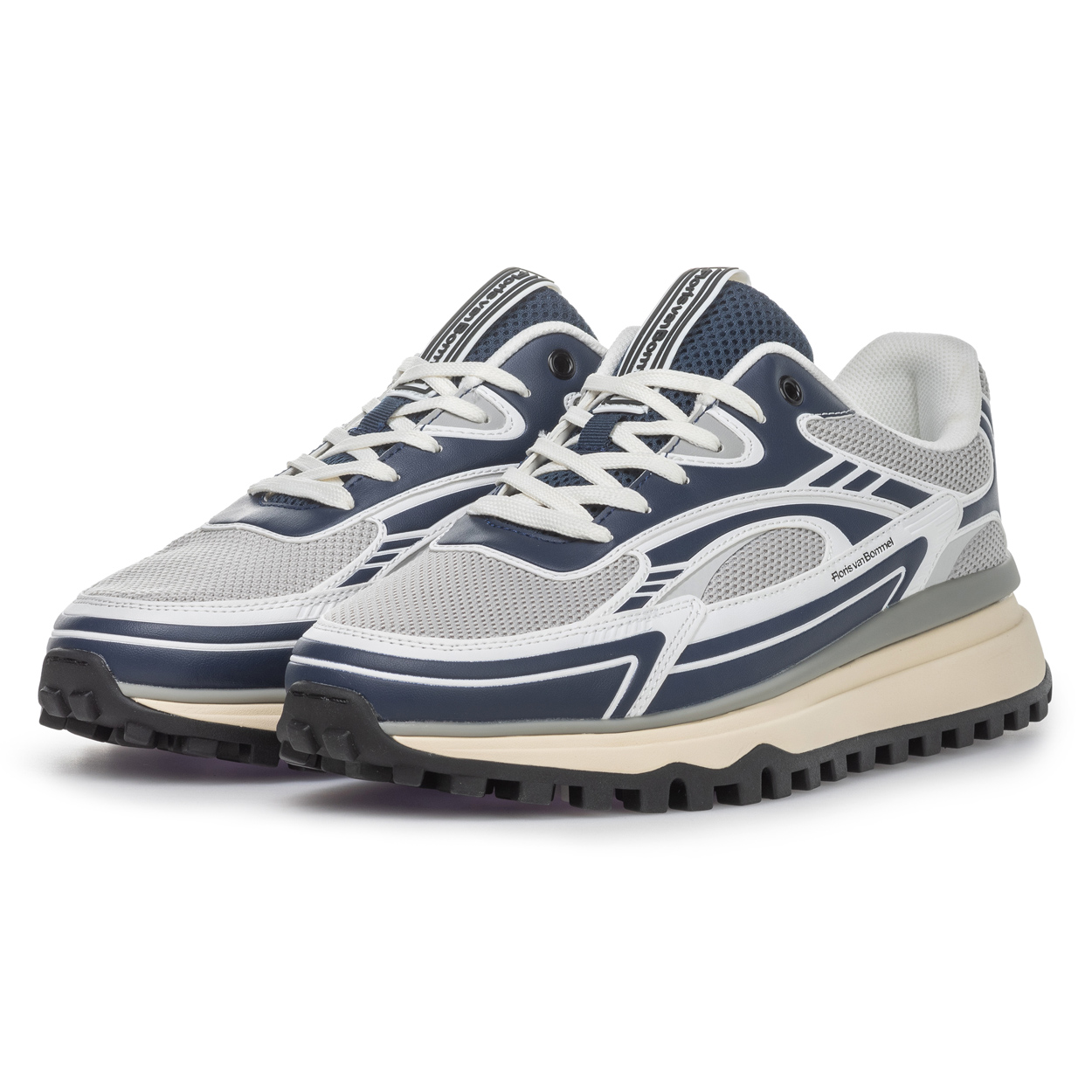 This is our most technical sneaker ever. To pull that off, it's also our first shoe without leather. The upper consists of mesh and high-frequency panels of polyurethane, finished with relief prints, colours and logos. The lining is also made of sporty mesh, giving the heel area that proper hyper sport look.