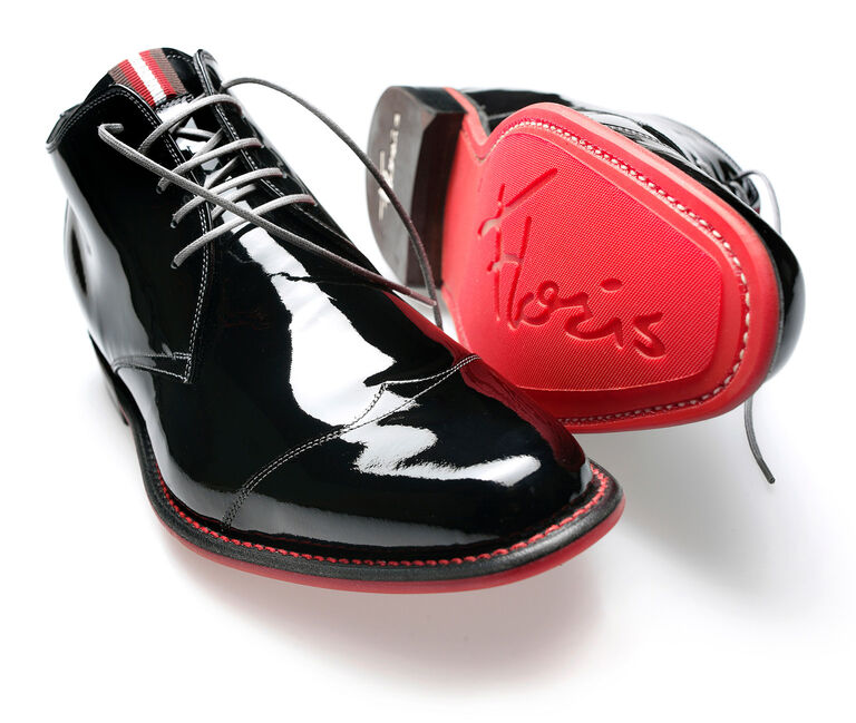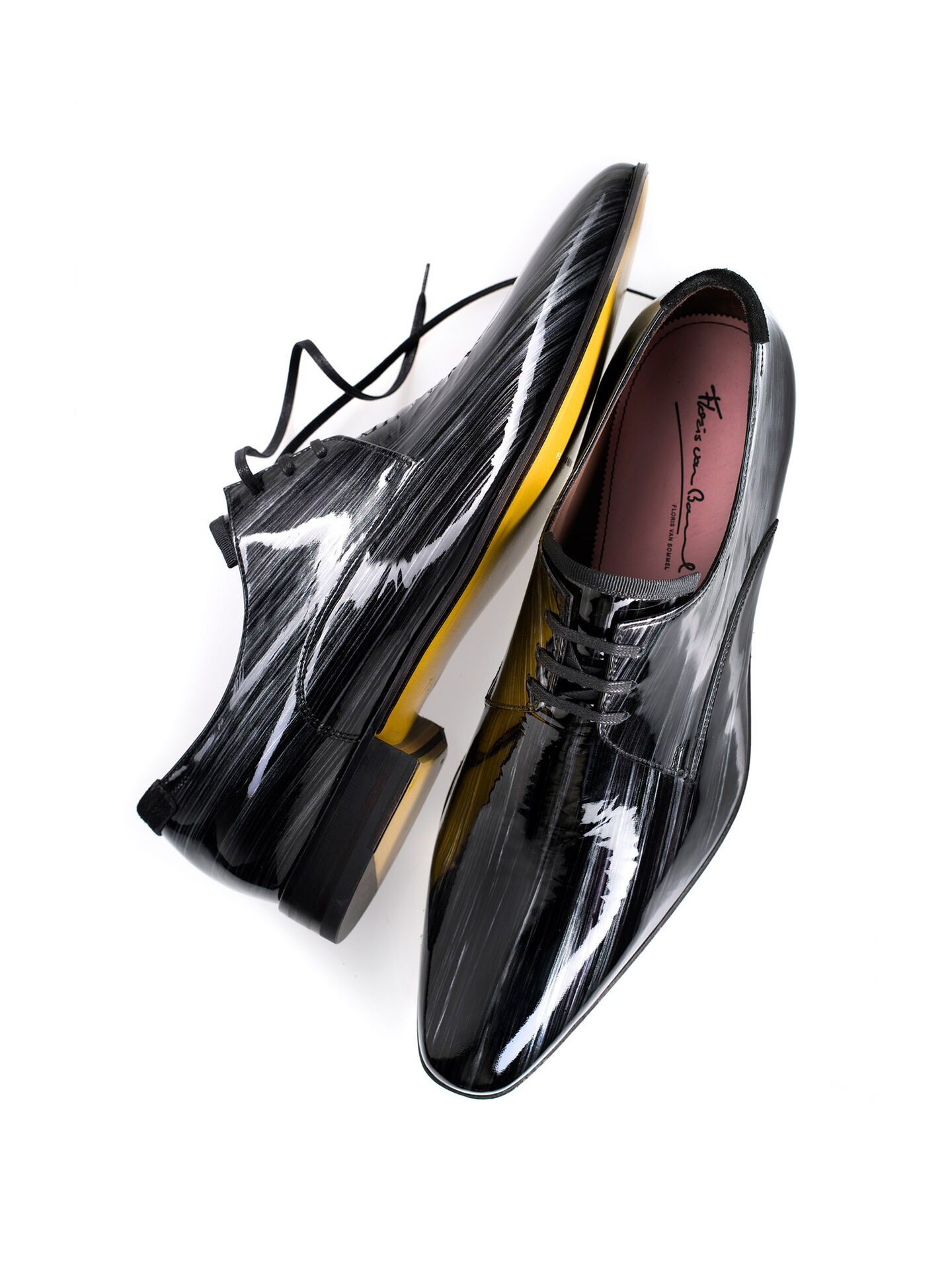 Floris: “Geert Hoste is one of Flanders’ most successful performers and comedians of the past decades. He always wore patent leather shoes on stage. When Geert mentioned in an interview that it was near impossible to find beautiful patent leather shoes, we were talking in no-time. Geert turned out to be a big lover of great shoes. From 2005 up until his last New Year’s Eve performance in 2015, we made multiple pairs of unique patent leather shoes for him every year.