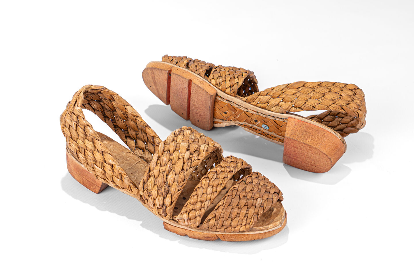 (Image below: All raw materials for making shoes were confiscated by occupying forces to produce war materials. In 1943, using rushes and wood, shoes could still be made on a small scale.)