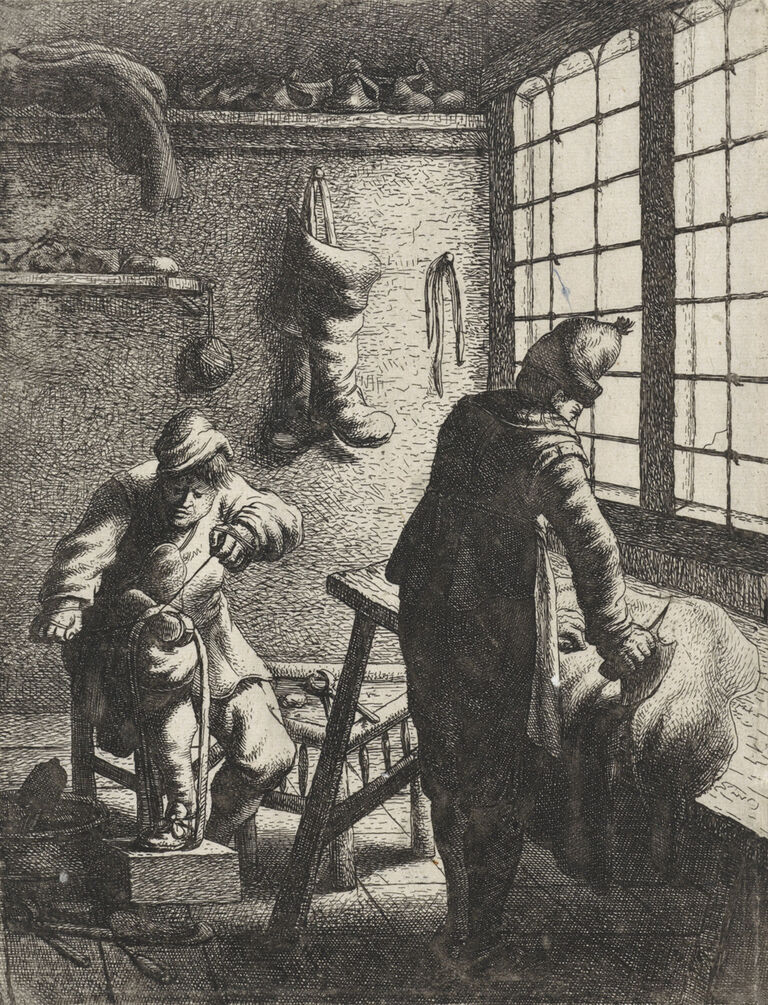 (Image above: A print showing 18th century shoemakers. From the collection of the Rijksmuseum.)