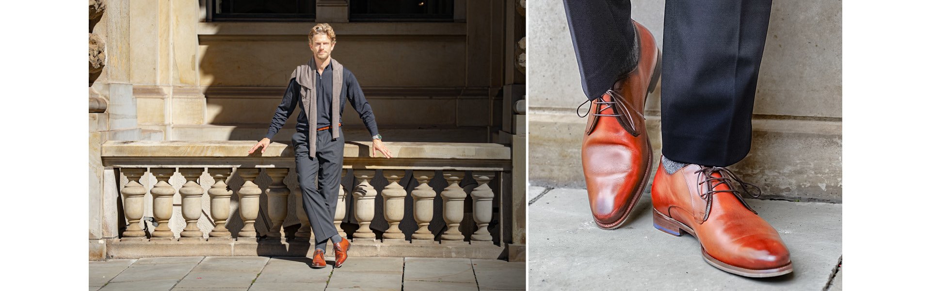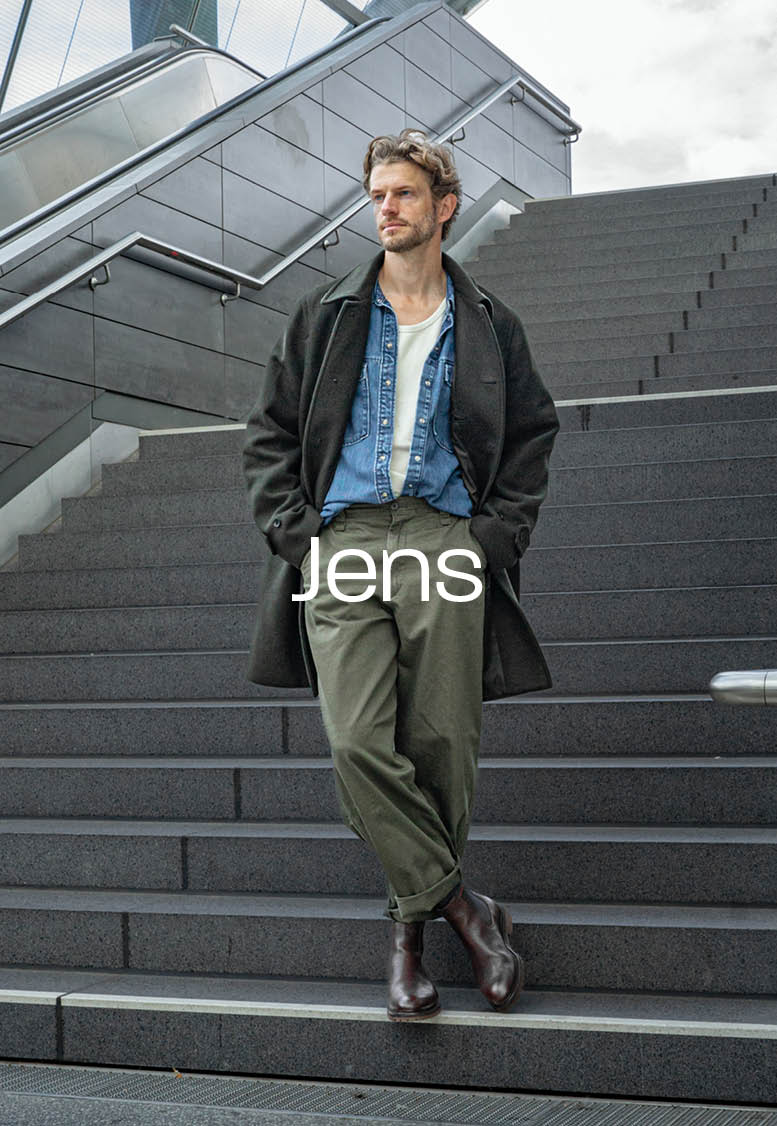 Jens shows how he styles the dark brown "Noppi" and orange "De Treener" sneakers, a classic cognac lace shoe, and a casual Chelsea boot from our winter collection.